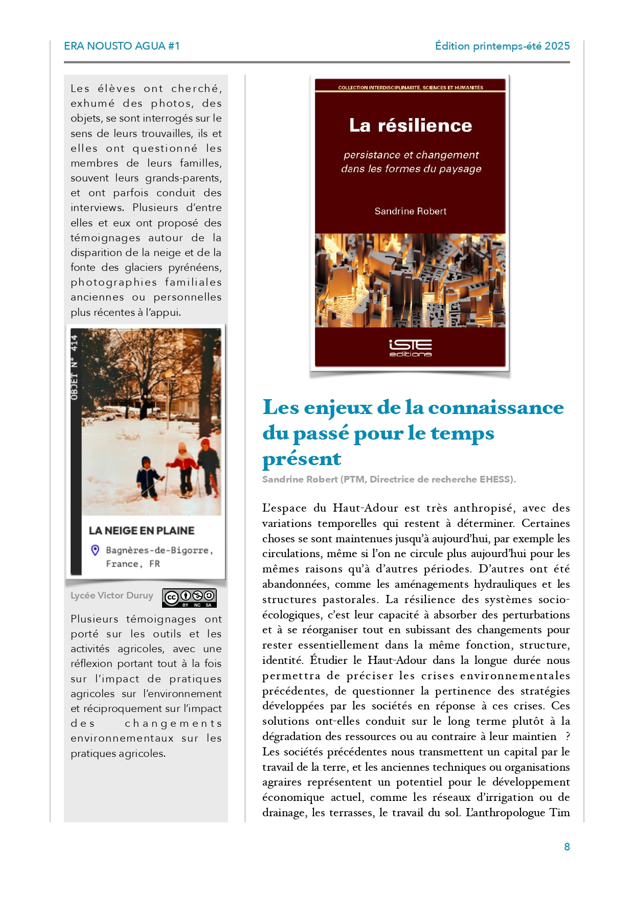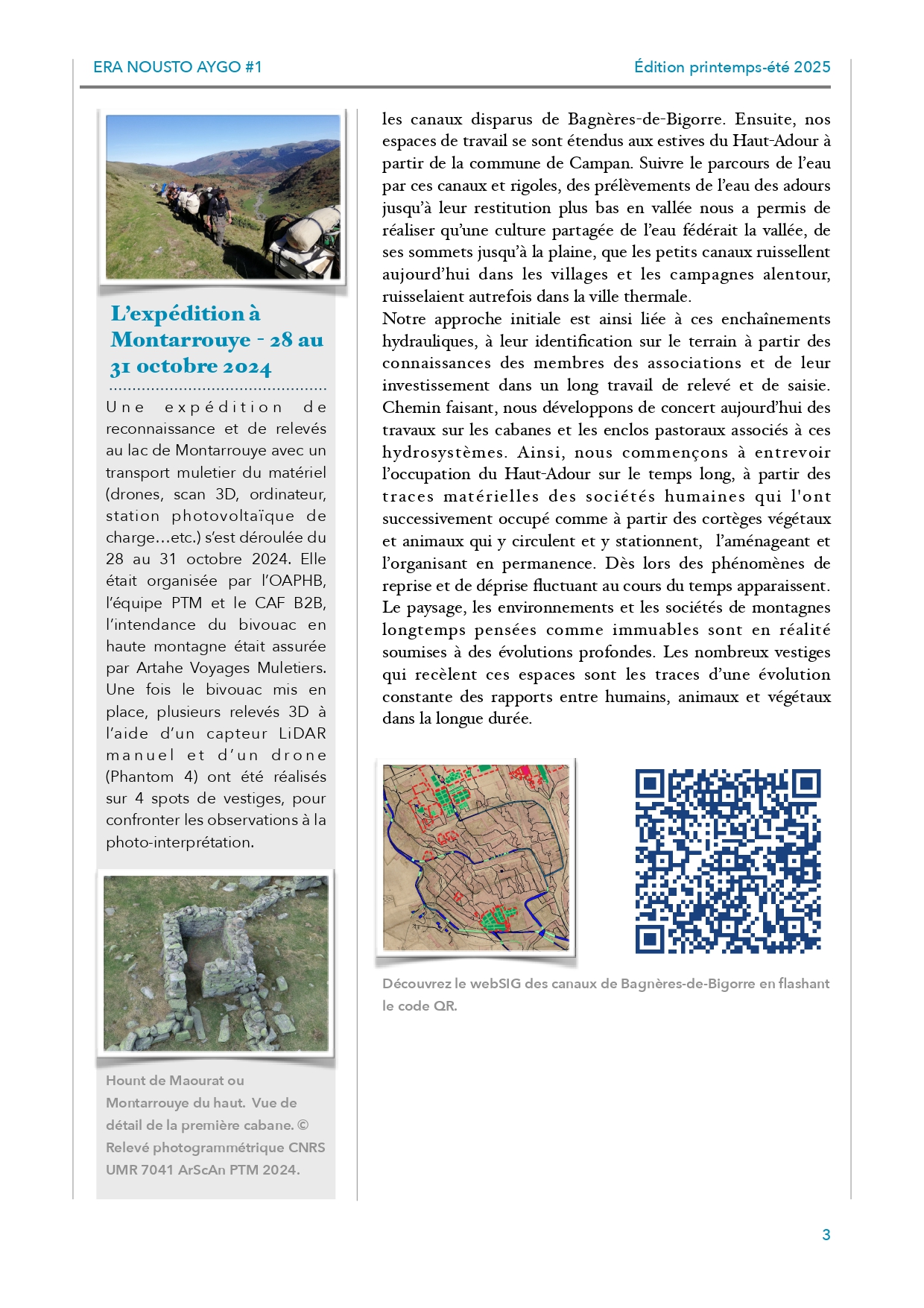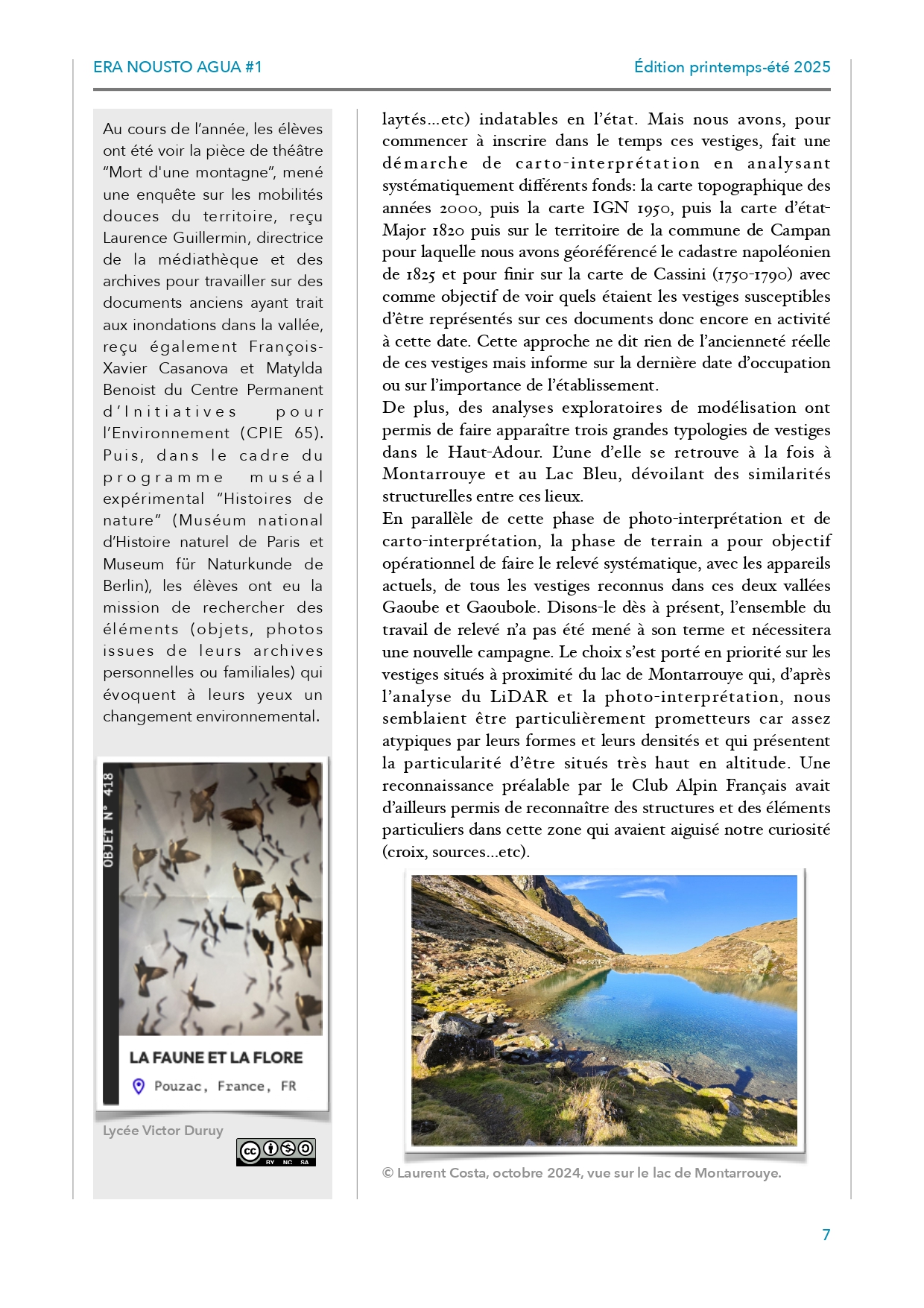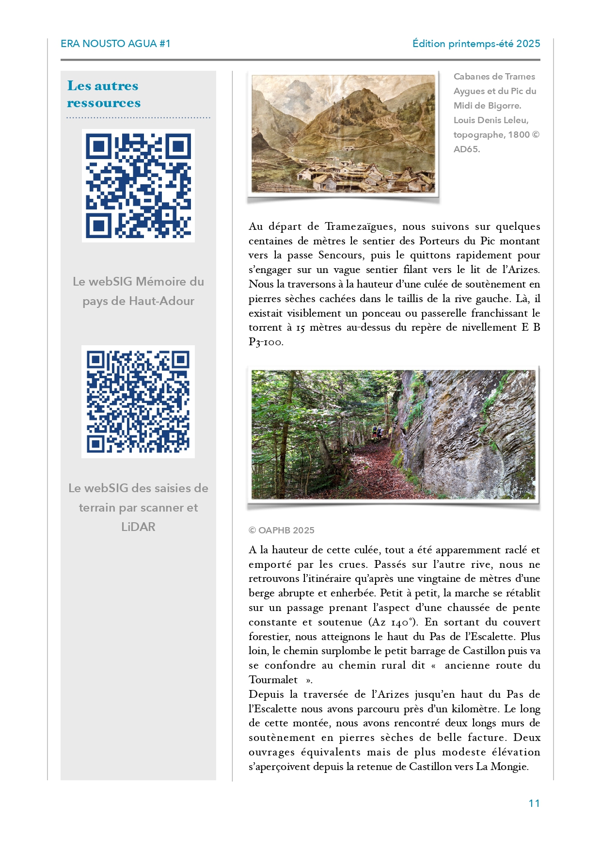 Le consortium PTM est résolument engagé dans des démarches de sciences avec et pour la société (SAPS), articulant sciences du patrimoine et participation citoyenne. Une première édition d’un journal de sciences et recherches participatives, rédigé dans le cadre du projet de la Manufacture de l’eau, relate les échanges qui se déroulent entre le consortium et les habitantes et habitants du Haut-Adour, ainsi que les travaux réalisés conjointement.